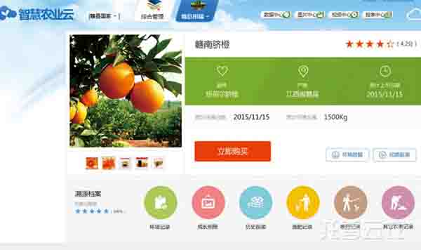 春秋農莊在景徽菜籃子生鮮電商生態系統上,通過托普農業物聯網系統建立臍橙質量安全溯源檔案,向消費者全方位地展示臍橙的生長環境、農事管理(用肥用藥情況)、采摘等環節,為消費者提供真實可靠的產品信息,使之放心購買。