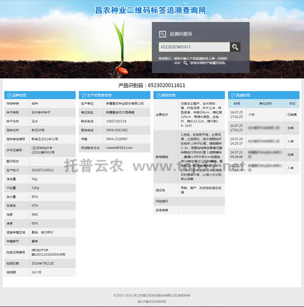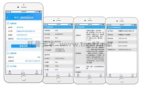托普農作物種子二維碼標簽追溯系統web界面及手機APP: