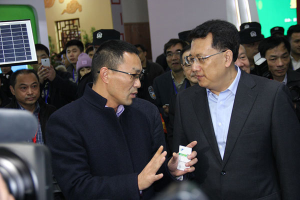 本屆展會(huì)“互聯(lián)網(wǎng)+”成托普云農(nóng)展區(qū)亮點(diǎn),吸引了省領(lǐng)導(dǎo)的目光及浙江衛(wèi)視的關(guān)注。省委副書記袁家軍、省人大常委會(huì)副主任程渭山、副省長(zhǎng)孫景淼等領(lǐng)導(dǎo)在工作人員的陪同下參觀了托普云農(nóng)展區(qū)。托普云農(nóng)董事長(zhǎng)陳渝陽(yáng)向袁家軍副書記一行介紹了公司在物聯(lián)網(wǎng)方面取得的階段性進(jìn)展和研發(fā)成果,結(jié)合現(xiàn)場(chǎng)展示的植保信息化系統(tǒng),向袁家軍副書記一行演示了智能農(nóng)業(yè)儀器是如何“+”互聯(lián)網(wǎng)技術(shù)在全天候無(wú)人值守的情況下實(shí)現(xiàn)“四情”監(jiān)測(cè)的。直接展現(xiàn)了互聯(lián)網(wǎng)產(chǎn)業(yè)與農(nóng)業(yè)產(chǎn)業(yè)融合發(fā)展促進(jìn)傳統(tǒng)農(nóng)業(yè)轉(zhuǎn)型升級(jí)的發(fā)展現(xiàn)狀。