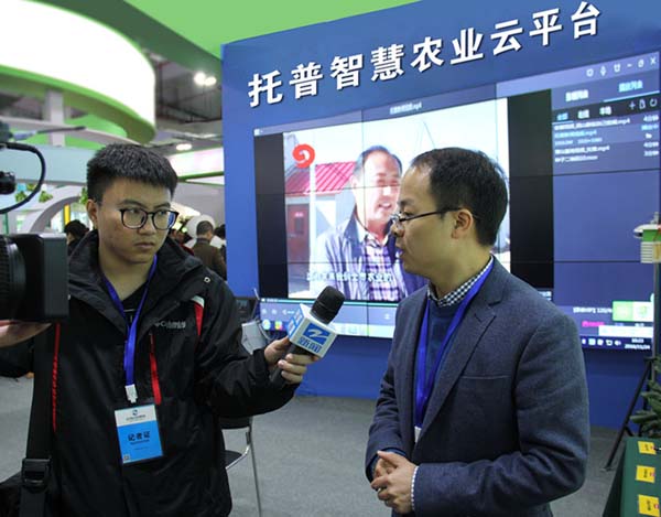 這一番“互聯(lián)網(wǎng)+農(nóng)業(yè)”的介紹也獲得了浙江衛(wèi)視的關(guān)注。記者來(lái)到托普云農(nóng)展位,公司副總朱旭華向記者介紹了公司獲得的科研成就及展出的智能化軟硬件系統(tǒng)。主要有:托普云農(nóng)農(nóng)業(yè)“四情”監(jiān)控系統(tǒng)、設(shè)施農(nóng)業(yè)監(jiān)控系統(tǒng)、水肥一體化監(jiān)控系統(tǒng)、智慧農(nóng)業(yè)云平臺(tái)等農(nóng)業(yè)物聯(lián)網(wǎng)系統(tǒng)、平臺(tái)及土壤墑情監(jiān)控系統(tǒng)硬件、農(nóng)藥殘留速測(cè)儀、相關(guān)智能硬件設(shè)備(如遠(yuǎn)程傳輸智能蟲情測(cè)報(bào)燈、溫室通、大田六合一無(wú)線傳感器、植物本體傳感器)。