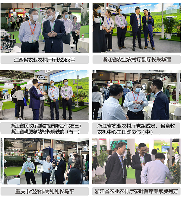 浙江省省委常委、省軍區(qū)司令員馮文平(左二);浙江省農(nóng)業(yè)農(nóng)村廳副廳長唐冬壽(左一);浙江省農(nóng)業(yè)農(nóng)村廳鄉(xiāng)村產(chǎn)業(yè)與市場(chǎng)信息處副處長程兵(右二)參觀托普云農(nóng)展位