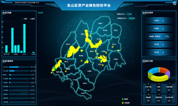 雅安名山位于成都平原西南邊緣,擁有茶園面積35萬畝左右,揚子江心水,蒙山頂上茶,千百年來被廣為傳頌。為進一步提質(zhì)增效,打造全國高品質(zhì)茶葉基地,打響蒙頂山茶品牌,雅安名山區(qū)目前已在核心區(qū)域布設天敵友好型茶園殺蟲燈900余臺,逐步完善茶園綠色防控體系的建設,通過特制的LED誘蟲光源,針對茶園主要害蟲精準防控,大大減少茶園化學農(nóng)藥的施用次數(shù)和施用量,保障茶葉品質(zhì)及生態(tài)環(huán)境安全,實現(xiàn)綠色高質(zhì)量發(fā)展。