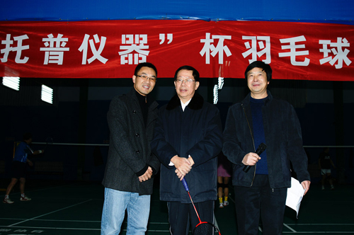 托普儀器總經理陳渝陽先生出席開幕式并致詞,與農業部機關羽毛球俱樂部一隊、二隊、外經中心羽毛球俱樂部隊以及全國農技推廣中心羽毛球俱樂部隊等四支球隊近80人共度2011年元旦佳節的最后一天。