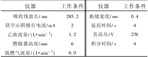 膏狀的葉綠素中主要是葉綠素鎂鈉鹽,在進行試驗的時候,稱取0.100 5 g葉綠素鎂鈉鹽,配制成50.00 mL葉綠素的儲備液。準(zhǔn)確移取1.00 mL葉綠素鎂鈉溶液于8只50.00 mL容量瓶中,再分別加入0.00、2.00、2.20、2.40、2.60、2.80、3.00、3.20 mL的50.00 mg·L-1Mg2+標(biāo)準(zhǔn)溶液,定容,搖勻。按一下的測定環(huán)境要求使用原子吸收分光光度計測定并繪制工作曲線,并計算線性回歸方程。就可以通過這一線性方程來進行計算葉綠素含量了。