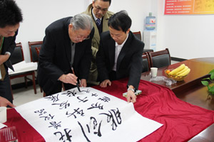 圖為:中國科學院院士、原浙江農(nóng)業(yè)大學校長、中國核農(nóng)學創(chuàng)始人陳子元院士(右二),全國農(nóng)業(yè)技術推廣中心栗鐵申副主任(中間),全國農(nóng)業(yè)技術推廣中心節(jié)水處高祥照處長(右一),杭州市拱墅區(qū)區(qū)委常委、區(qū)科技工業(yè)功能區(qū)管委會范永晨書記(左二)在簽名處合影留念