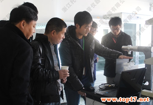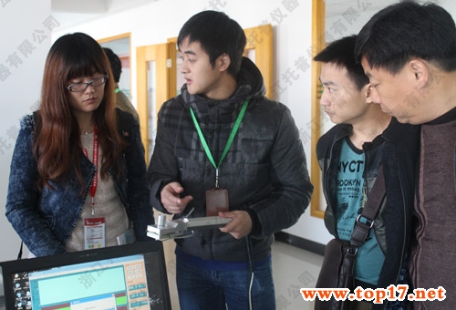 圖為:托普儀器技術(shù)人員為經(jīng)銷商講解產(chǎn)品性能及操作方法