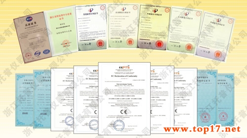 圖為:托普儀器獲得國家專利證書和CE認證證書