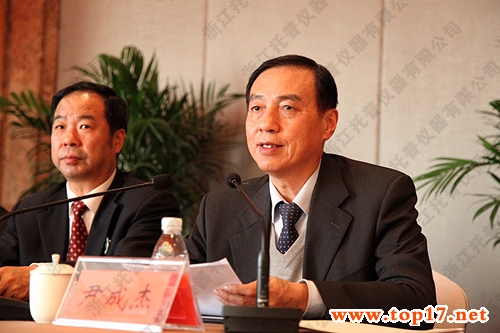圖為:全國人大農業與農村委員會副主任委員、中國農技推廣協會會長尹成杰在會上發表講話