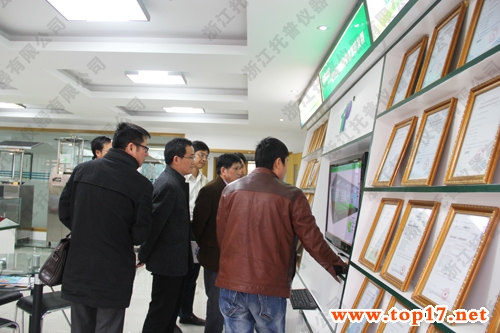 參觀結束后,陳總經理還為各位領導詳細講解了托普儀器物聯網系統在設施園藝、果園、墑情監測、農場等中的實際應用以及以及由托普儀器協助完成的成功案例。吳處長對托普如今的物聯網研發技術表示了肯定,他說到,如今要做好現代化農業建設,就需要像托普儀器這樣有前瞻性的企業起到良好的帶頭作用。最后,吳處長等領導希望托普儀器為浙江省農業現代化多出力,并鼓勵托普要堅持走信息化發展道路,努力研發新型農業技術,促進浙江省農業現代化的發展。