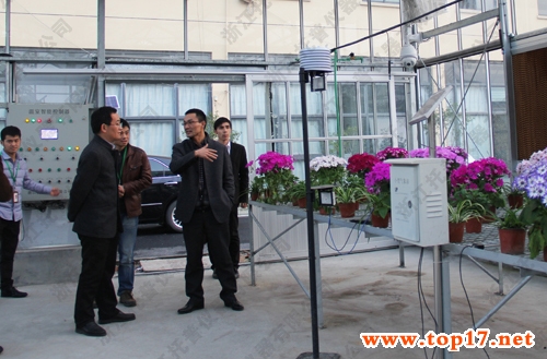圖為:托普儀器技術人員為吳處長等領導演示物聯網系統的室內操作