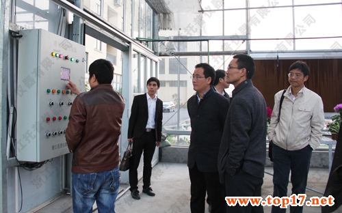 圖為:托普儀器技術人員為吳處長等領導演示物聯網智能控制柜的操作