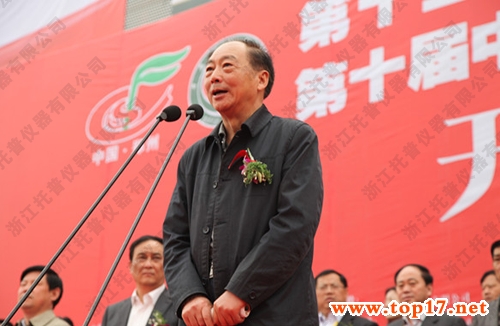 圖為:國務(wù)院參事、農(nóng)業(yè)部原副部長劉堅(jiān)宣布大會開幕