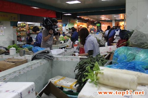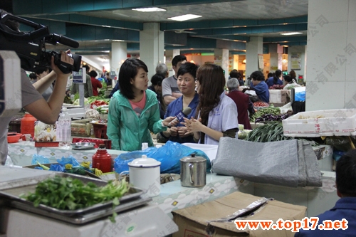 菜場攤主先進儀器測農殘,浙江衛視來采訪