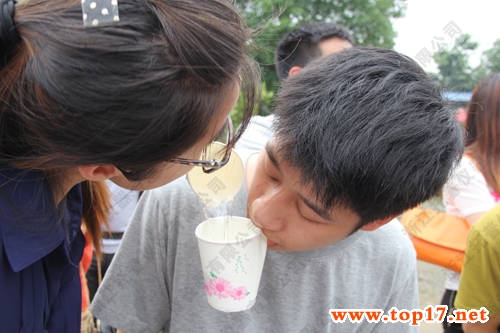 接下來進行的是紙杯傳水和八人九足。和拔河相比,這兩個項目更需要參賽人員的細心和合作。比賽的隊員一邊比著,一邊琢磨更好的方法,旁邊看的隊員不斷為同伴“支招”,還沒比賽的隊伍則在研究“戰略部署”,希望在比賽中取得更好的成績。整個比賽場面如火如荼。