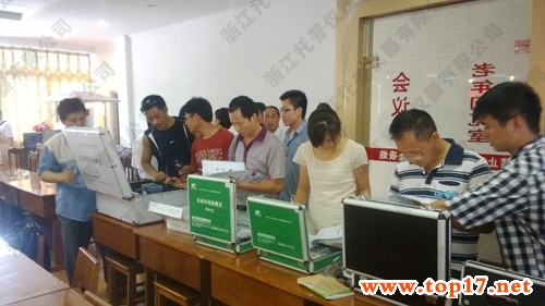 圖為:托普銷售代表(右一)和技術(shù)員(左三)向培訓(xùn)人員講解公司產(chǎn)品