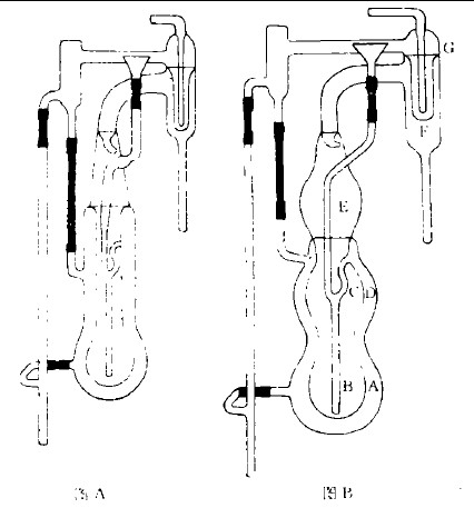 3、冷凝瓶G下部增加一個空腔F,以容納倒吸入的接收液,防止接收液進(jìn)入蒸餾瓶。