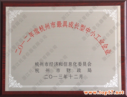 托普儀器榮獲2012年度杭州市最具成長型中小工業企業獎勵