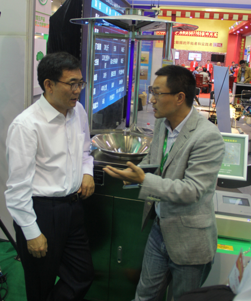 農交會期間,張合成司長一行親臨托普儀器展臺考察指導工作,托普儀器陳渝陽總經理詳細介紹了此次展出的農業物聯網“四大系統”平臺:設施農業自動監測與控制平臺、農作物病蟲害監測預警信息平臺、土壤墑情監測與預警信息平臺、食品安全監控與追溯信息系統。張合成司長表示,信息化技術是現代農業的重要發展方向,應加強研究力度,提高整體應用水平。