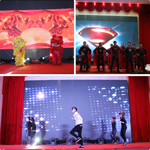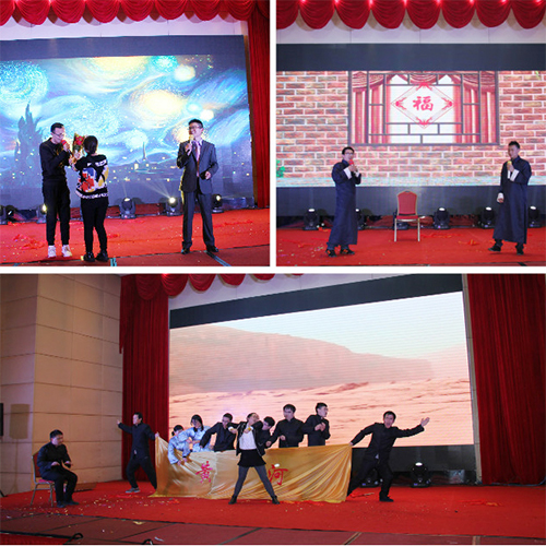精彩紛呈的“新故事,新起點”2016新春年度盛典在四位支持人的深情開場中拉開序幕。熱情歡樂《金獅送福》領先開演,為大家送來了新年的祝福;勁舞《說愛就愛》,激情火爆,樂觀向上的精神風貌展現得淋漓盡致;研發團隊的舞臺劇《電影院那些事》演繹了公司研發人員豐富飽滿的內心世界。一首《飄雪》,瞬間將我們就帶入了純情浪漫模式。古箏演奏,優雅悠揚;激情昂揚的《保衛黃河》將整個晚宴推向高潮;銷售部老男人們的《群魔亂舞》讓大家更是樂的開懷暢飲!期間的互動環節及歡樂大抽獎讓全場氛圍熱烈而又充滿期待,高潮迭起!