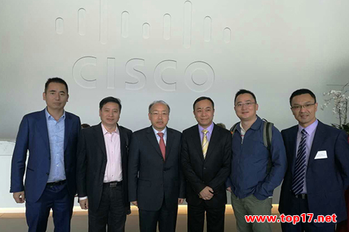 周國輝廳長(左三)、陳渝陽董事長(右一)一行在思科