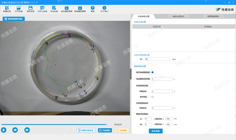 3.目標跟蹤參數設置:用戶可根據需要,調整需要跟蹤的目標昆蟲大小、停留時間等信息,提高跟蹤的精度。