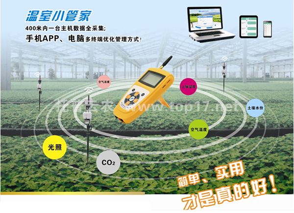 溫室小管家又叫農(nóng)業(yè)環(huán)境在線監(jiān)測(cè)儀可接土壤、氣象、作物本體等幾十種傳感器,采集數(shù)據(jù)可本機(jī)查看,亦可上傳至智慧云平臺(tái)和手機(jī)APP,方便隨時(shí)查看;帶語(yǔ)音報(bào)警和數(shù)據(jù)播報(bào)功能,可播報(bào)超限環(huán)境信息;可設(shè)置自動(dòng)采集,實(shí)現(xiàn)無(wú)人值守不間斷數(shù)據(jù)采集;最多可存8000組數(shù)據(jù),亦可配內(nèi)存卡不限量儲(chǔ)存。小巧便攜,是設(shè)施農(nóng)業(yè)中實(shí)用、高性價(jià)比的溫室小管家。