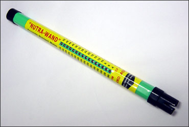 肥料濃度測試筆使用方法:您所購買的RS-100有完全防水的探測頭,不但使用方便而且輕巧,只要將標示有 “For conductivity This way down” 黑色箭頭的一端置入肥料溶液,輕輕攪拌一下即可測量,你會發現測頭上面的燈會亮起指示正確的數值。